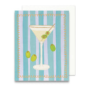 Playful and ready for any occasion, these everyday greeting cards feature blue and purple watercolor stripes, a loopy orange border, and a dirty martini with olives in the center. Designed from an original watercolor painting, it’s a fresh, versatile pick for thank-yous, celebrations, or just saying "cheers."