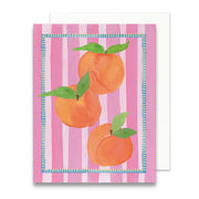 Sweet, simple, and ready for any occasion. These everyday greeting cards feature bright pink watercolor stripes, a cheerful blue and yellow border, and three perfectly painted peaches at the center. Designed from an original watercolor painting, it’s a fresh, versatile choice for thank-yous, thinking-of-you notes, or just because.