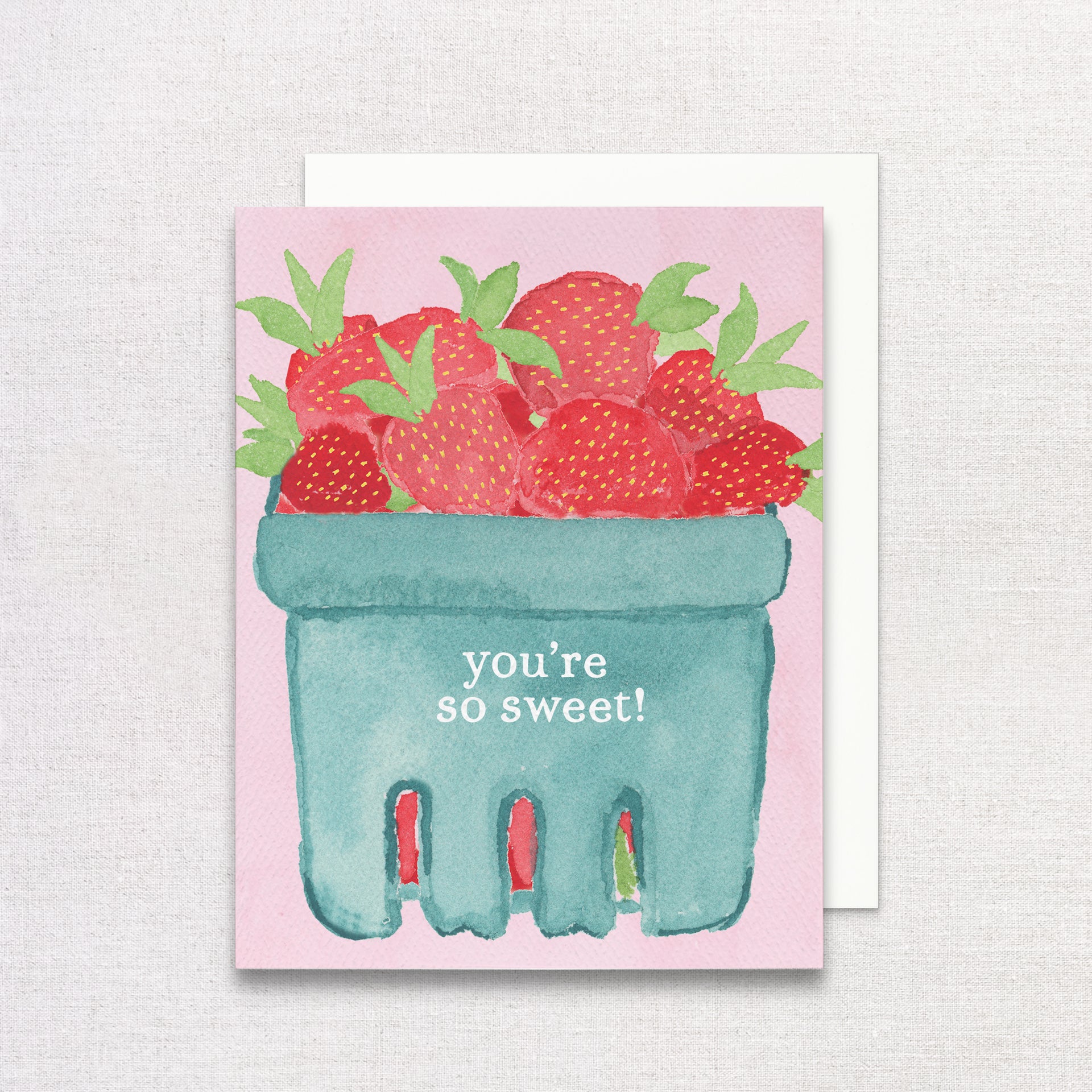Say thank you with a little sweetness! This charming boxed set of 6 thank you greeting cards features a hand-painted crate of red strawberries and the phrase “you’re so sweet." Created from original watercolor artwork, it’s a fresh and cheerful way to send gratitude or a thoughtful note.
