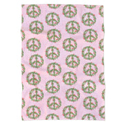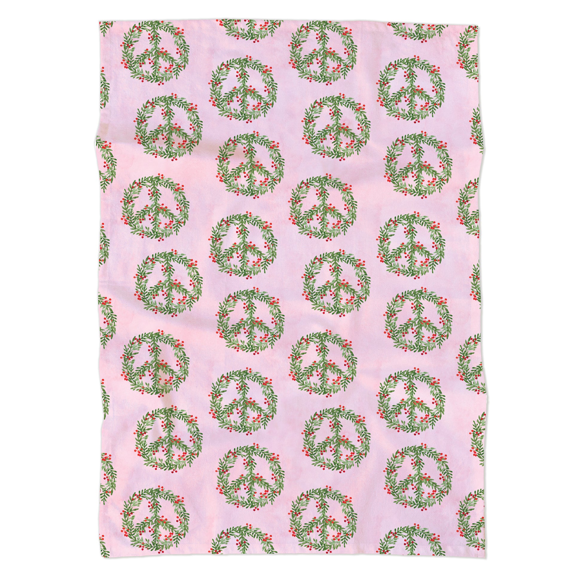 Add charm and cheer to your holiday kitchen with this whimsical tea towel featuring hand-painted wreaths shaped like peace signs, set against a pink background. It’s a cheerful kitchen accent for anyone who loves a pink Christmas or a bright, colorful holiday style.
