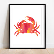 The original red and pink crab design was hand-painted to create a unique, coastal piece for your bedroom, kid's room, dorm room, or office. The crab features pops of pink, orange, and yellow. This print is perfect for anywhere you want to add a pop of color and a piece of coastal décor!