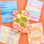 A birthday card for anyone who is a ray of sunshine! Featuring an original acrylic painting with a retro vibe.